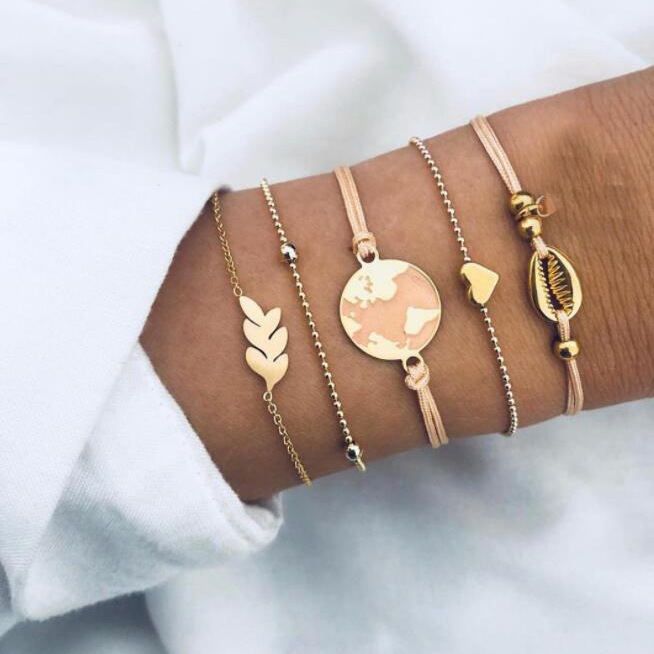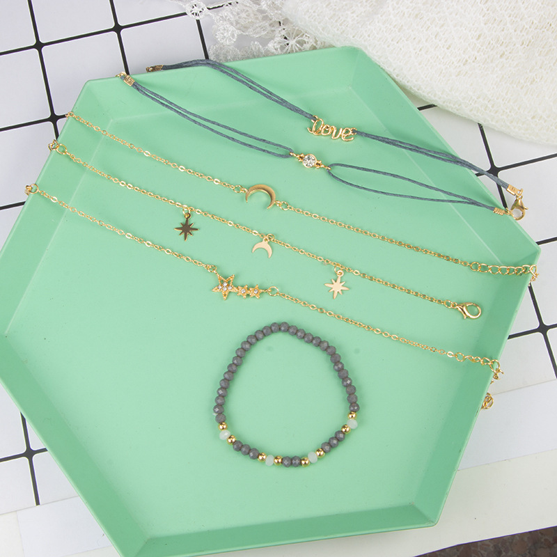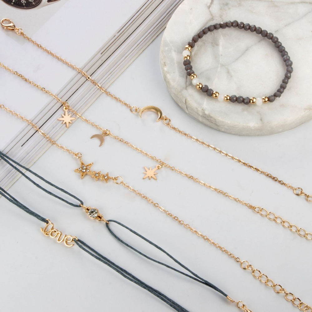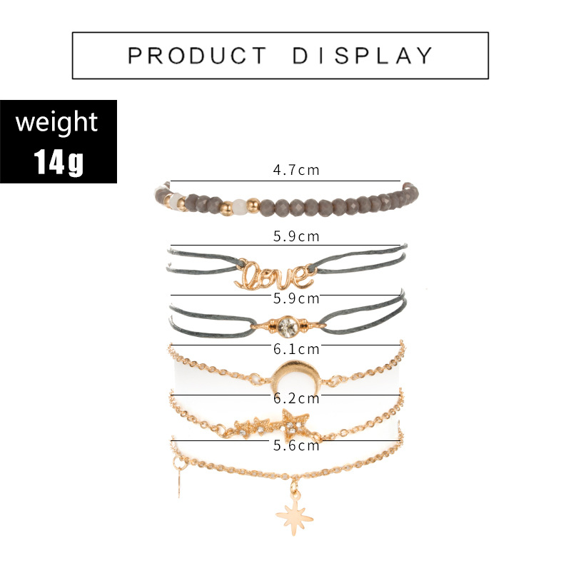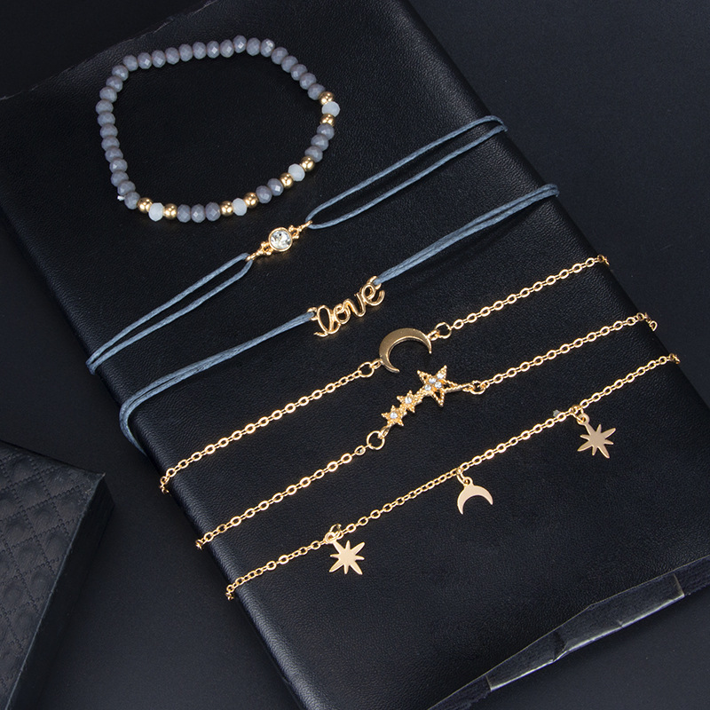 Tocona Bohemia Love Moon Bracelets for Women Charms Bead Gold Star Clear Crystal Stone Letter Rope Jewelry Accessories 6523