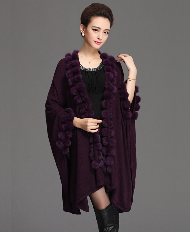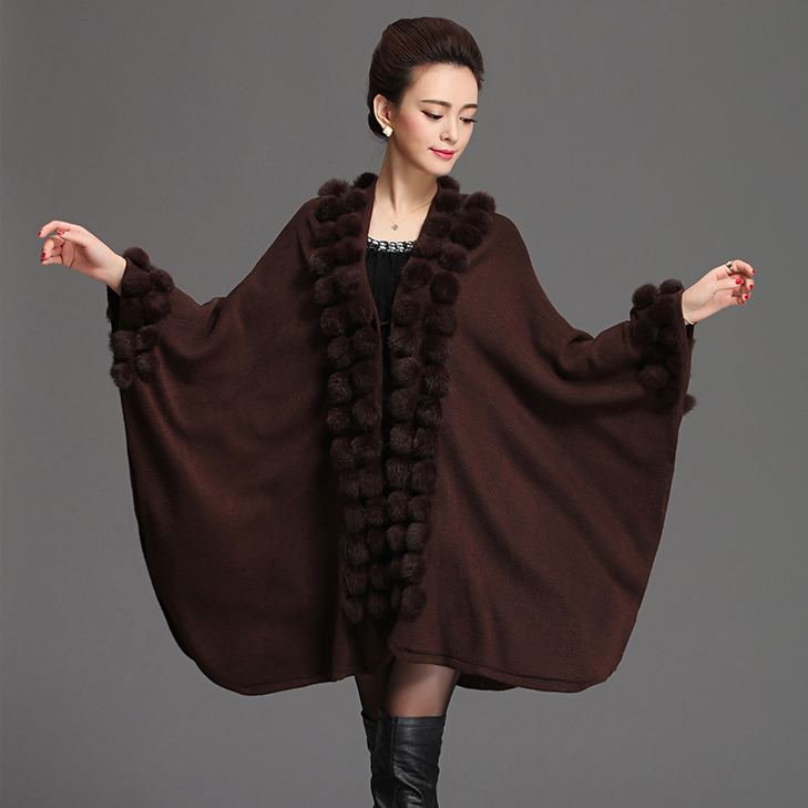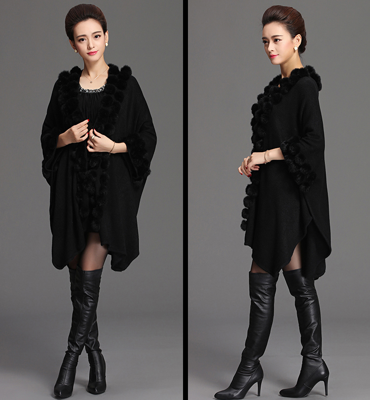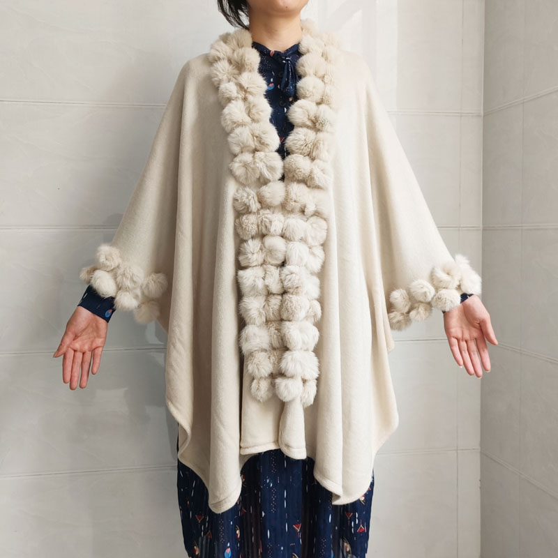 Design : Women Rabbit Fur Poncho Shawl Coat