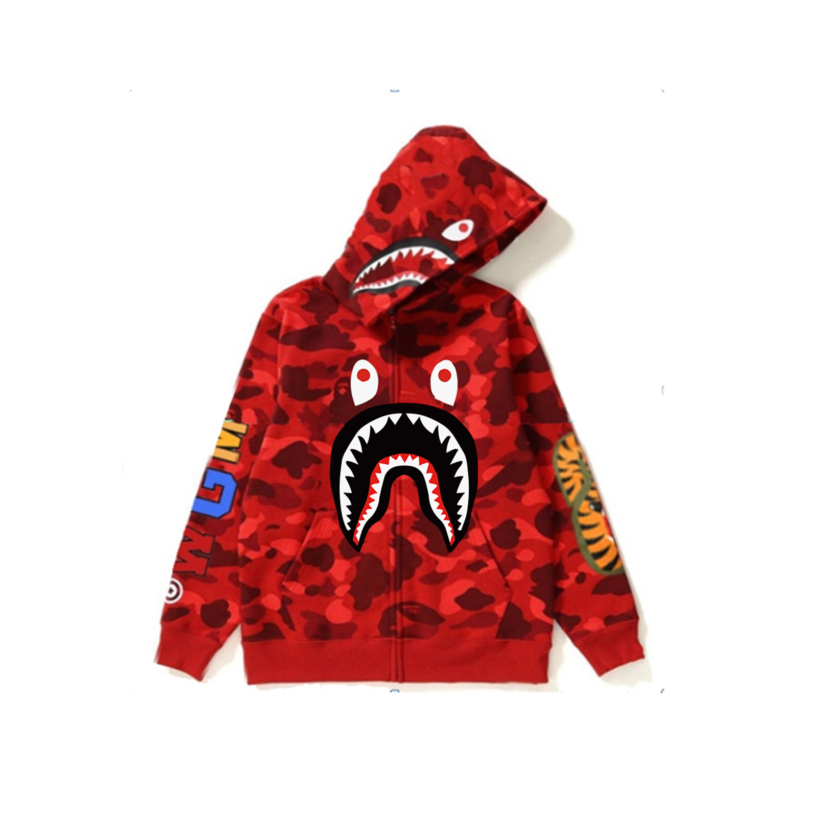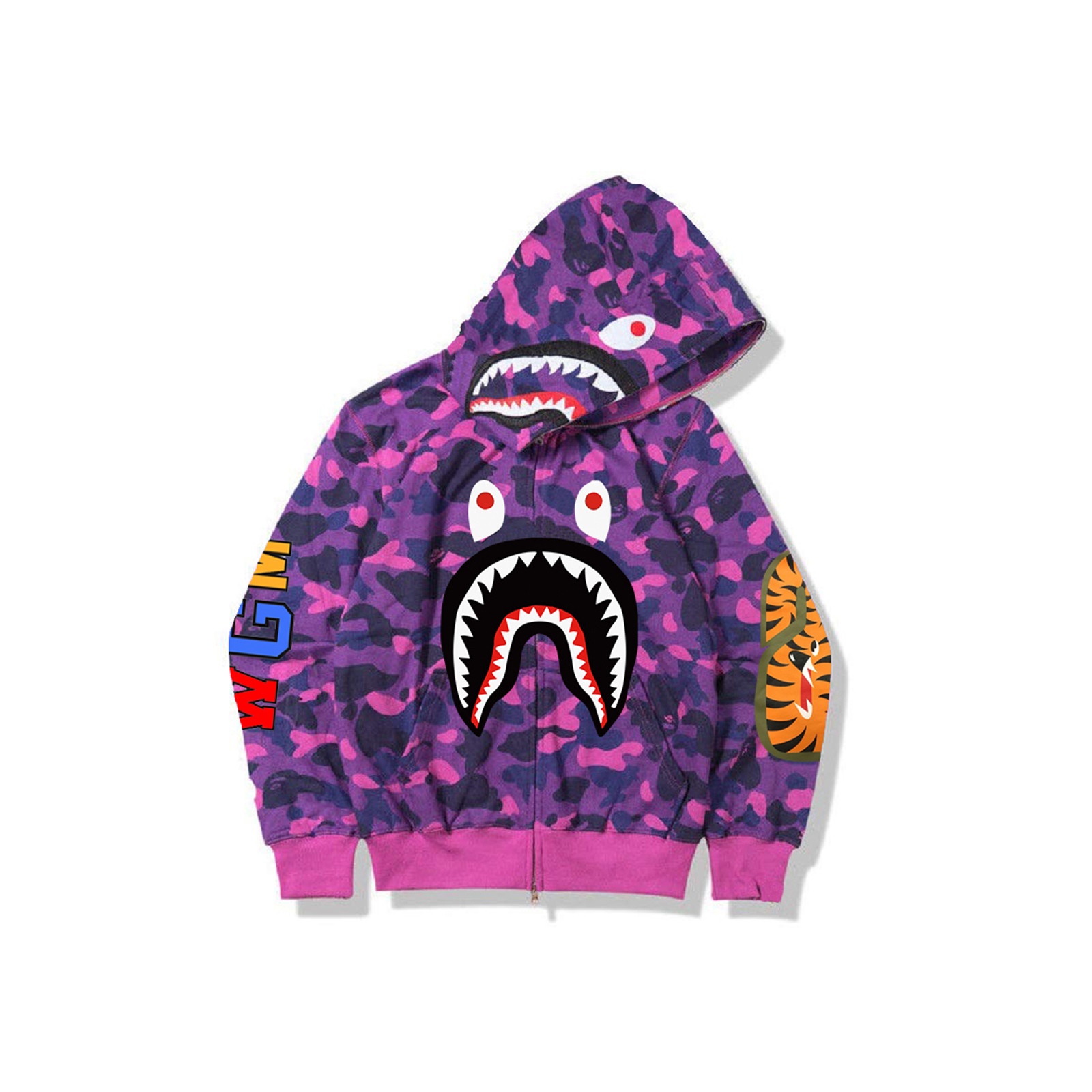 Trendy Hoodie Winter Camouflage Couple Wear Hoodie Casual Cardigan Hooded Bapes Shark Jacket Street Style Men's Jacket