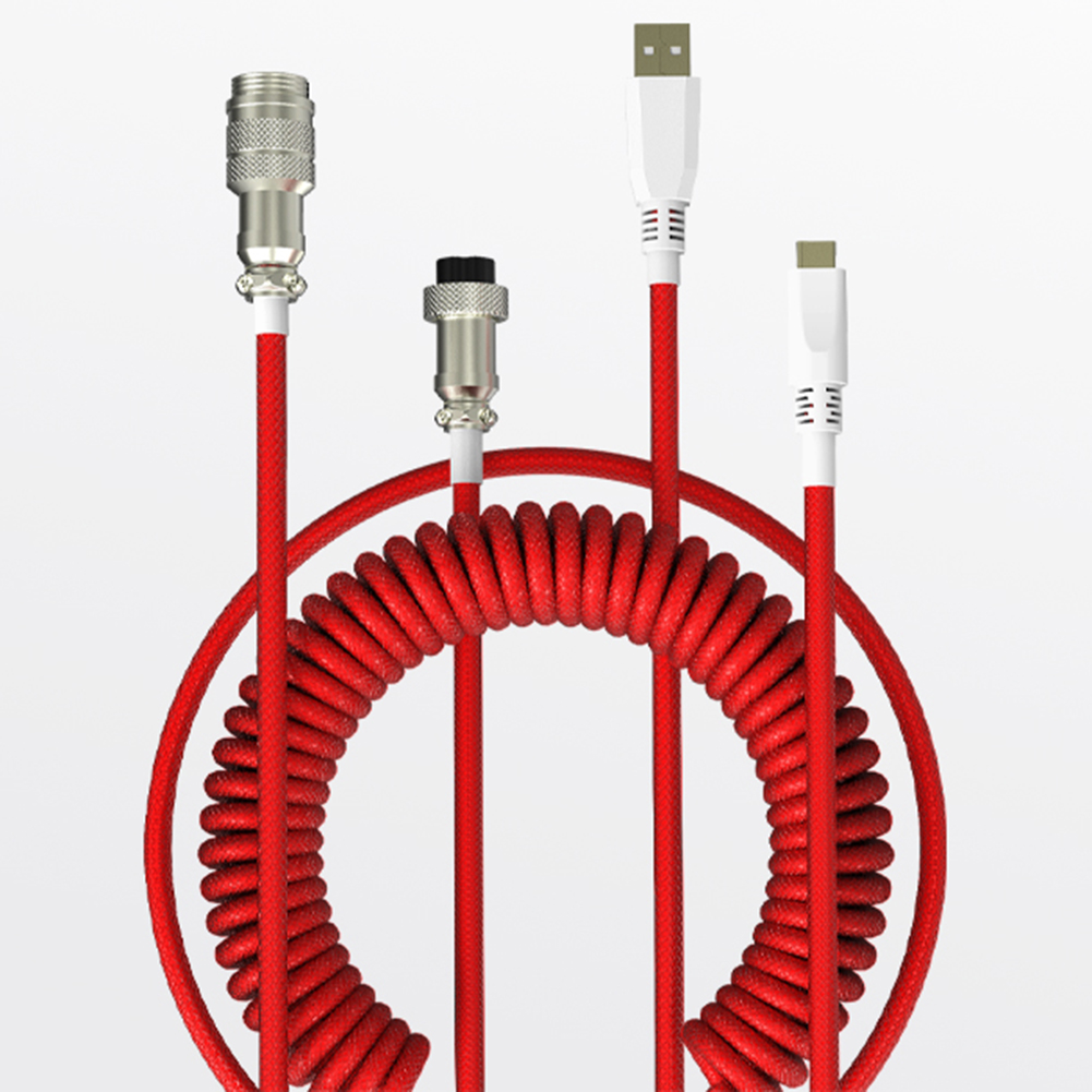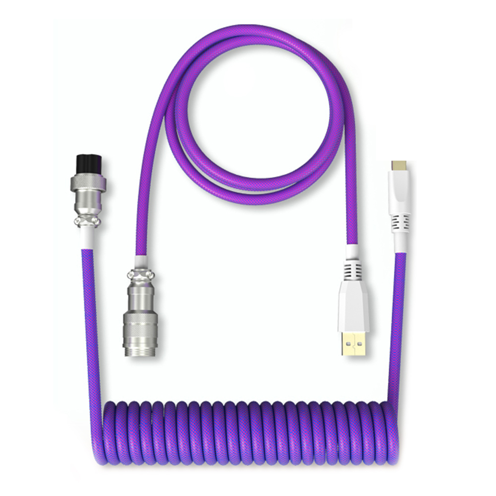 Mechanical Keyboard Aviator Cable Aviation Connector Coiled Type-C USB Wire Kit Desktop Computer Decoration Accessory Feature: Built-in bulletproof fiber. The internal structure is solid and durable. Performance far exceeds the industry average Aviation connector connector. Unique, solid interface, reduce signal loss, lossless transmission, a plug and pull, easy to fix The connection can be long or short and telescopic. Strong and tough wire, wear-resistant and durable, comfortable line movement, tensile resistance, not broken Easy to receive, elastic is not wound, can shrink the spring line, the wire is strong, the zhuo surface is no longer chaotic as hemp Easily fit your device. Widely compatible with most of the products on the market, Type-c interface keyboard, to achieve ultra-fast data transmission, stable continuous action can defeat the enemy Specification: Material: braided thread Interface Type: Type -C to USB Wire material: 5 cores with shielding customized Color: Black, White, Red, Purple (optional) Application: Compatible with all Type-c USB mechanical keyboards Length: about 1.8m /5.9ft(unfolded) Weight: 250g Note: The spiral part of the rope is mainly used for decoration, and it is easy to be deformed or even destroyed by excessive tension. Make sure you don't use violence against your lovely cables Due to the different monitor and light effect, the actual color of the item might be slightly different from the color showed on the pictures. Thank you! Please allow 1-2cm measuring deviation due to manual measurement.