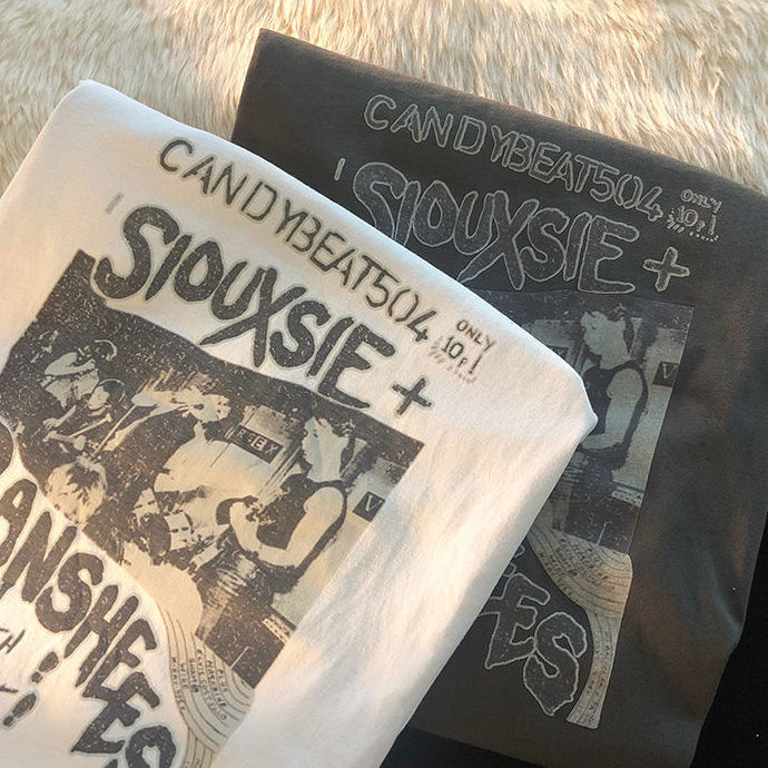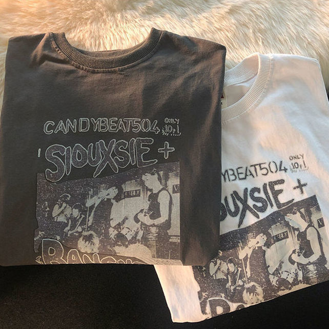 Vintage Harajuku style short sleeved T shirt for in summer versatile American print loose student half sleeved top for couples