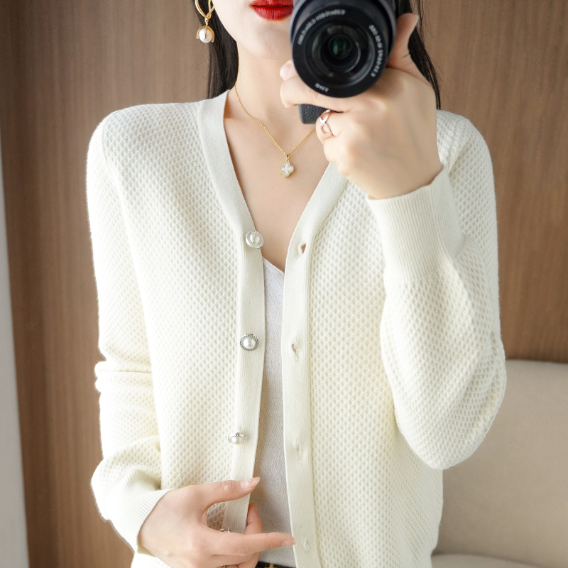 V-neck cashmere cardigan women's sweater in autumn and winter sweater loose thickened solid sweater long sleeved sweater