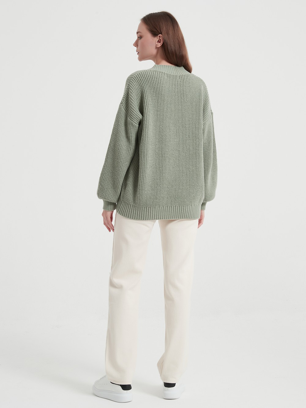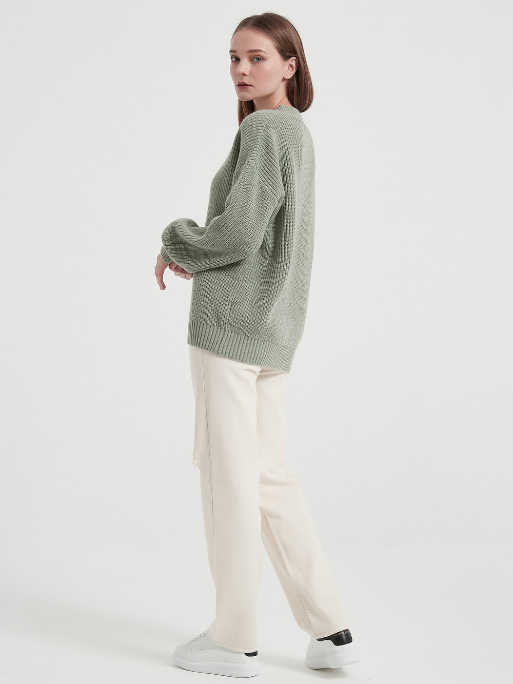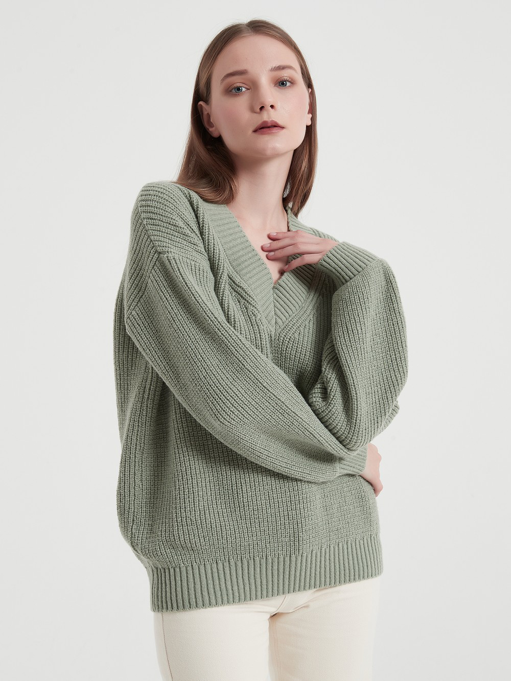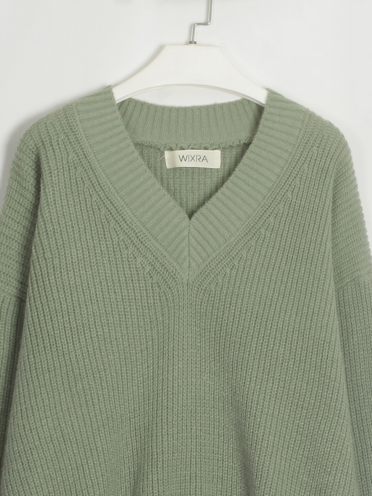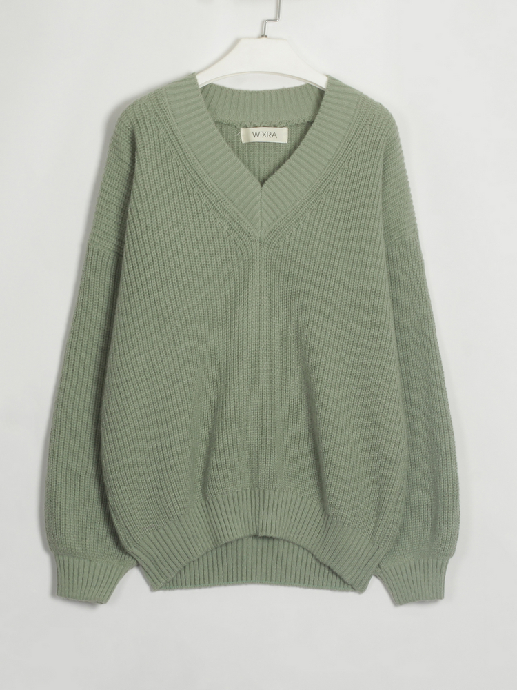 Wixra Women Basic V Neck Sweater Warm Thick Loose Pullovers Solid Jumper Casual Top Autumn Winter