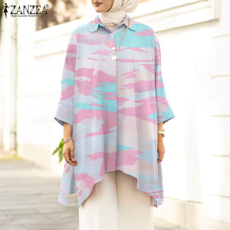 Women Bohemian Tie-dyed Shirt Spring Long Sleeve Muslim Abaya Blouse ZANZEA Vintage Loose Tunic Tops Casual Islamic Clothing