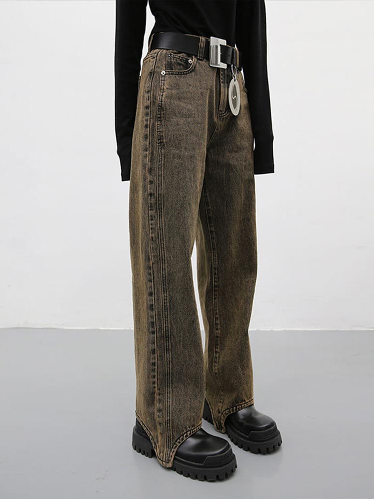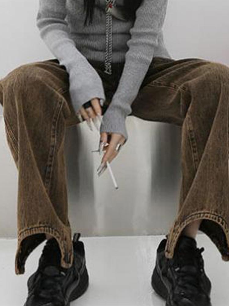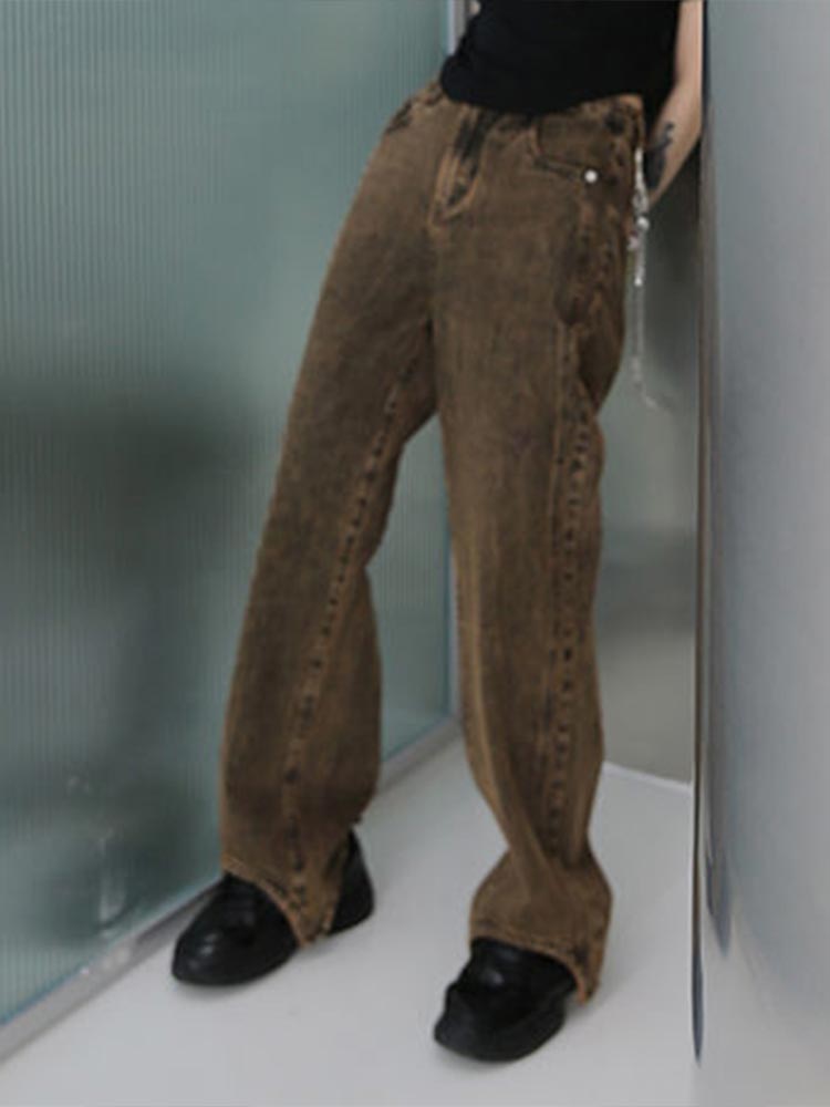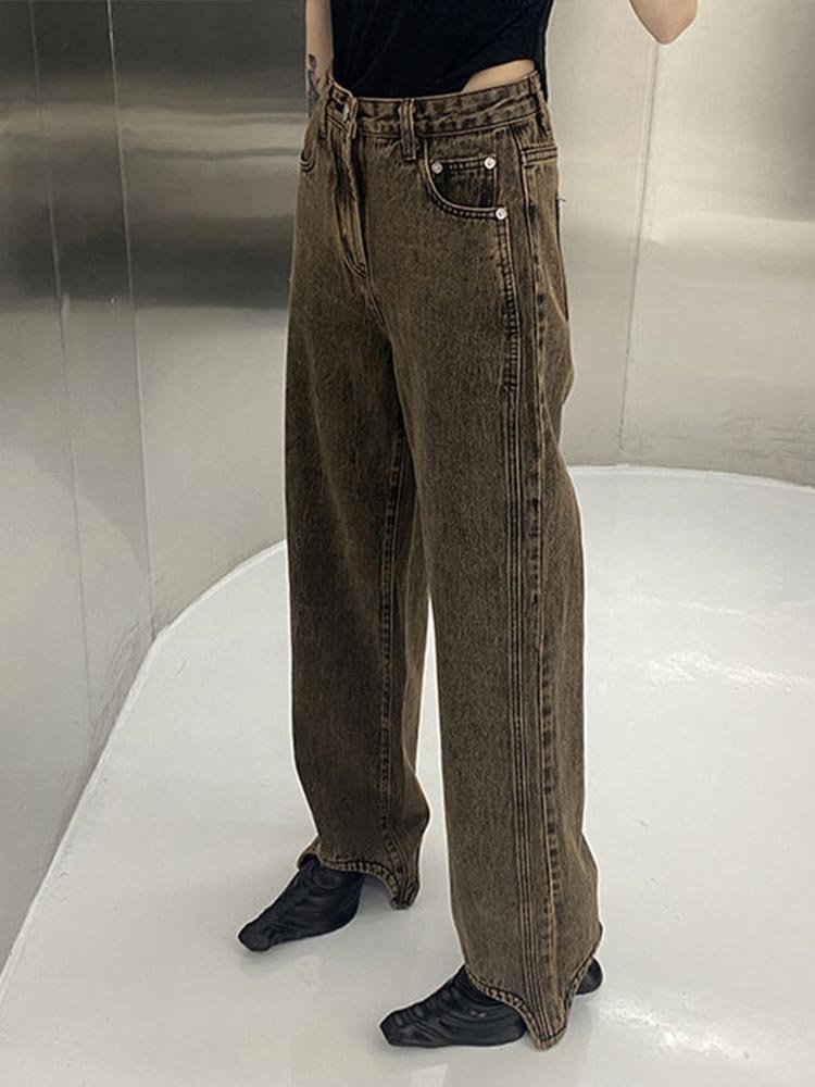 Women Brown Vintage High Waist Straight Jeans Spring And Autumn Baggy Wide Leg Pants Retro Streetwear Denim Trouser