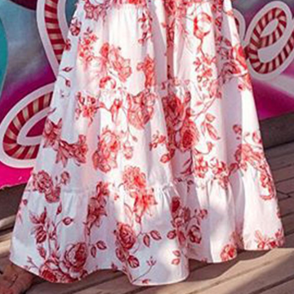 Women Dress Floral Print Ruffles Women Flower Pattern Long Dress Streetwear