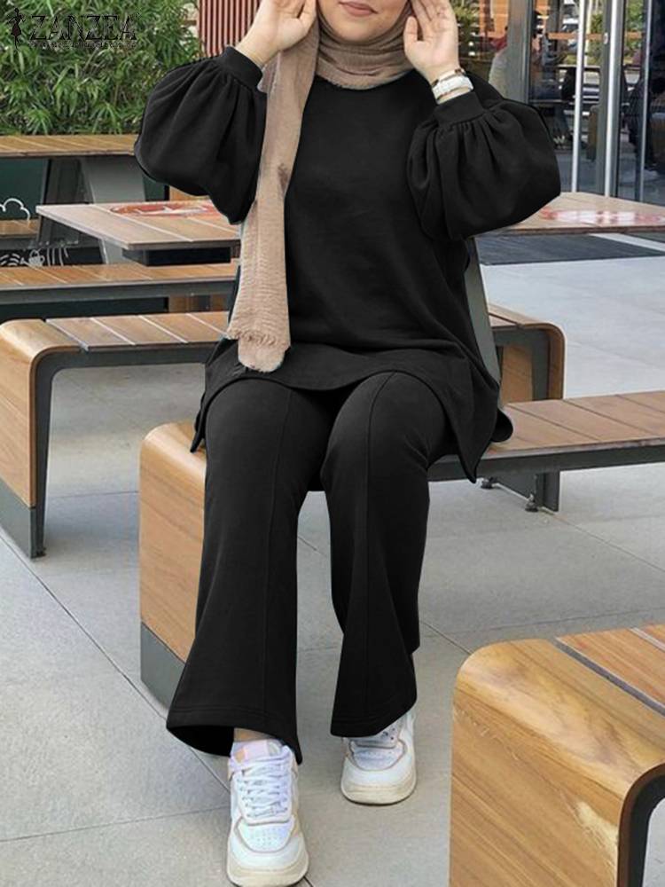 Women Full Puff Sleeve Casual Set ZANZEA 2 piece Set Muslim Urban Tracksuit Solid Loose Pant Suits Outifits Matching Set