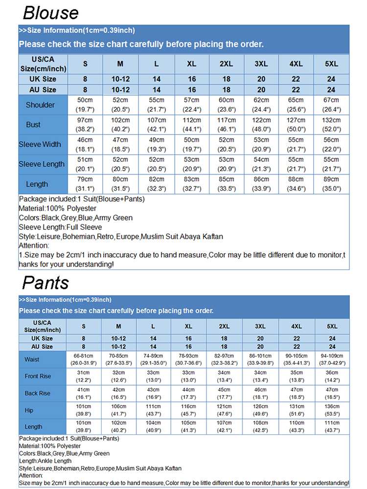 Package included:1 Suit(Blouse+Pants)