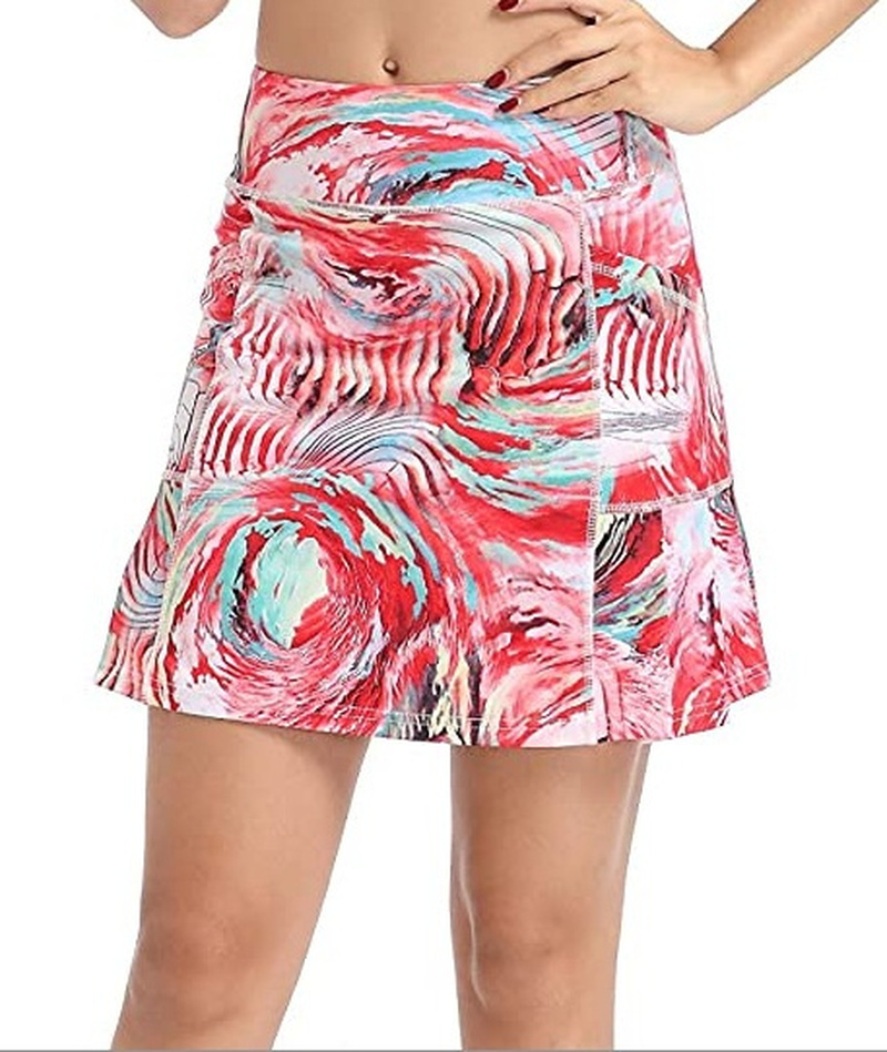 Women Mini Skirt Tie-dye Print High Waist Two Layers with Pocket Skirt Workout Fitness Sport Skorts Golf Tennis Running Skirts