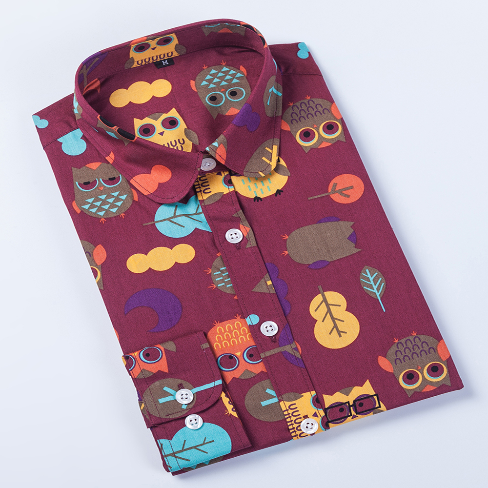 Women Shirts Long Sleeve Cotton Blouse Print Cherry Lips Flower Top Shirts For Women Autumn Under Shirt Ladies Office