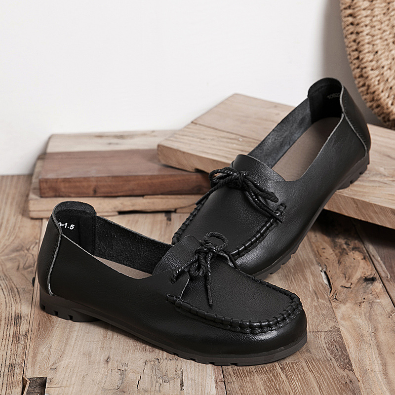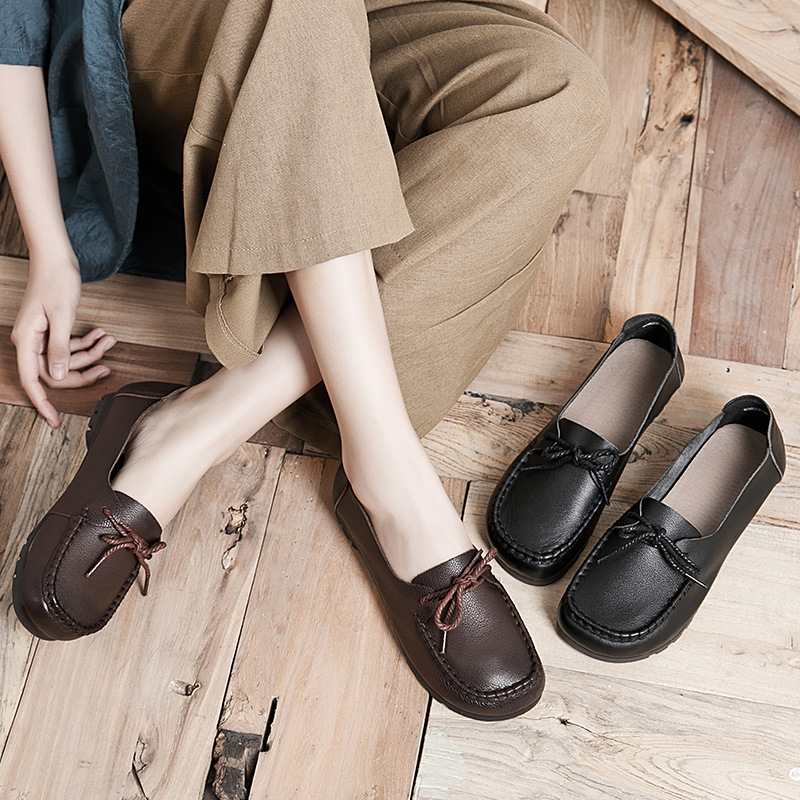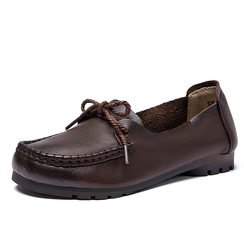 Women Shoes Genuine Leather Women Flat Shoes Casual Loafers Lace Up Women's Flats Shoes Moccasins Lady Driving Shoes