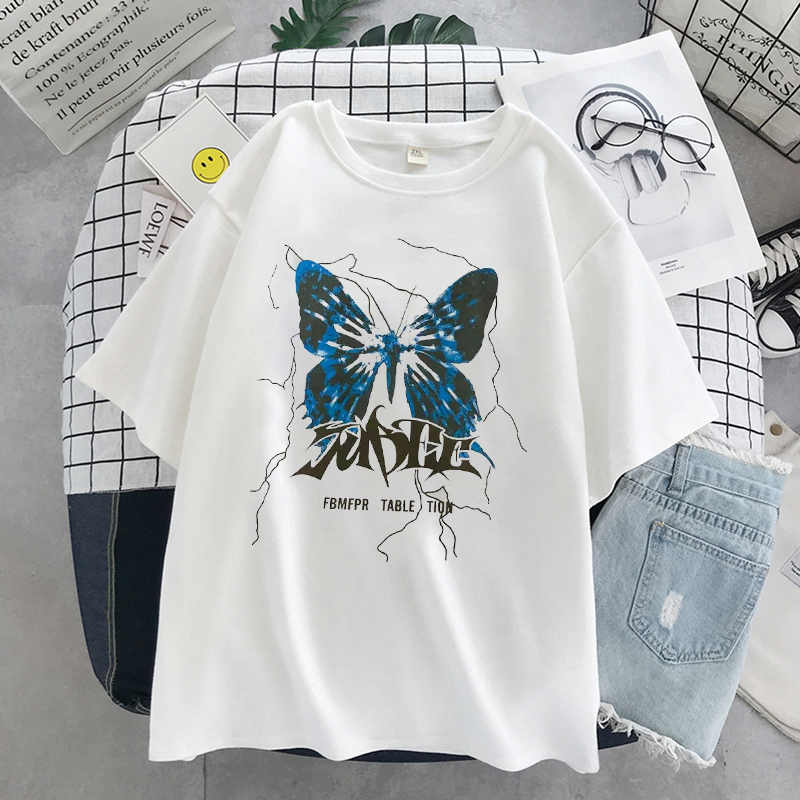 Women T Shirt Streetwear Harajuku Oversized T-shirtFemale Butterfly Short Sleeve Tshirt Hip Hop Loose Unisex Clothes Top Y2k