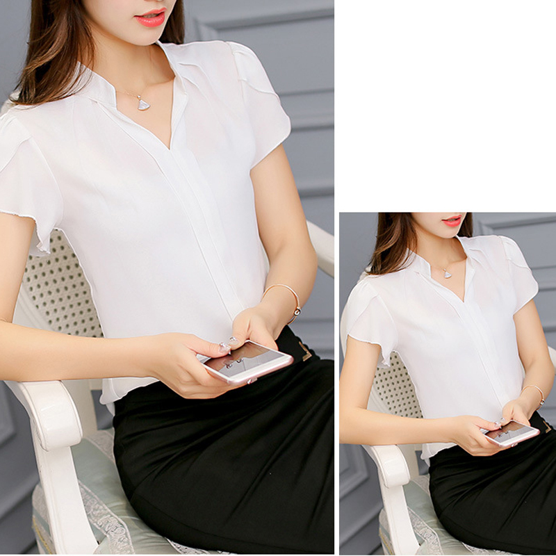 Material : Chiffon Size L = EU Size M S : length 60cm; shoulder 35cm; bust 88cm; M : length 61cm; shoulder 36cm; bust 92cm; L : length 62cm; shoulder 37cm; bust 96cm; XL : length 63cm; shoulder 38cm; bust 100cm; XXL : length 64cm; shoulder 39cm; bust 104cm;