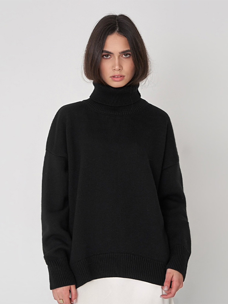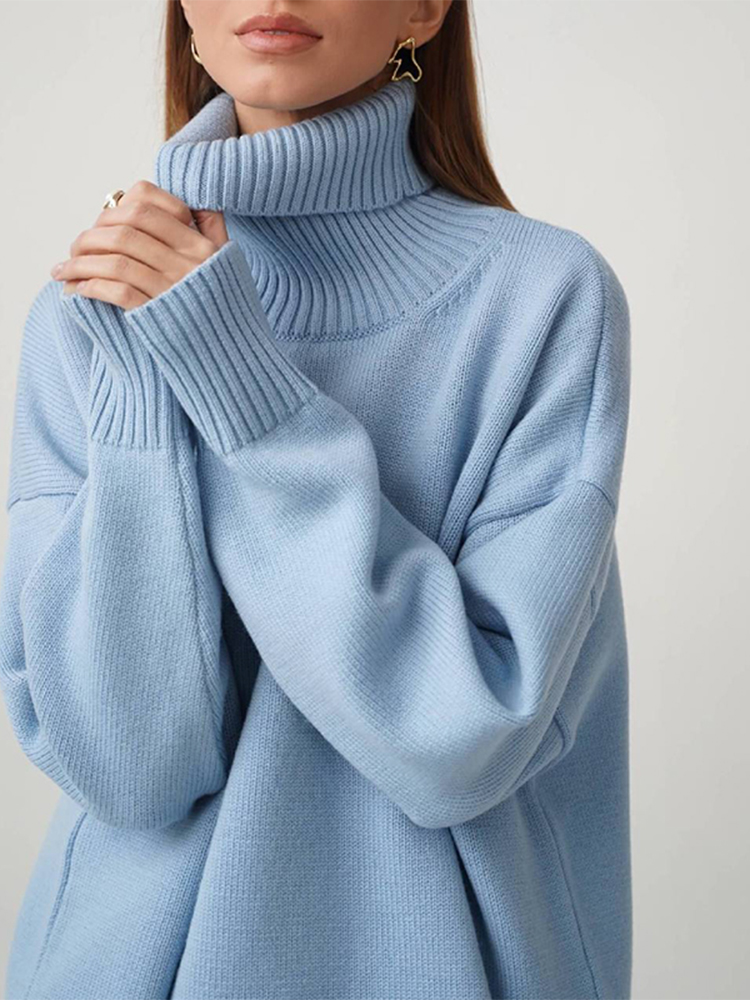 Women Vintage Chic Knitted Turtleneck Pullover Elegant Solid Long Sleeve Sweater Autumn Winter Female Casual Loose Tops