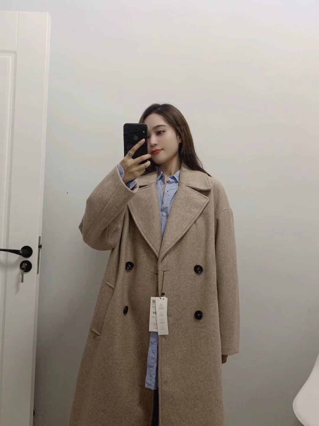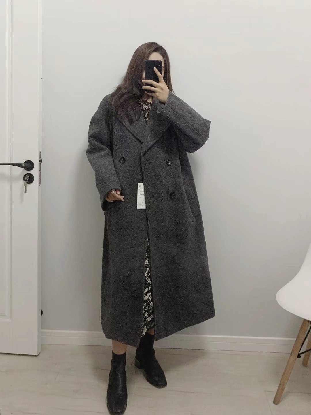 Women's Solid Color Loose Jacket Coat Long Sleeve Double Breasted Pocket Lapel Long Commuter Office Worker Casual
