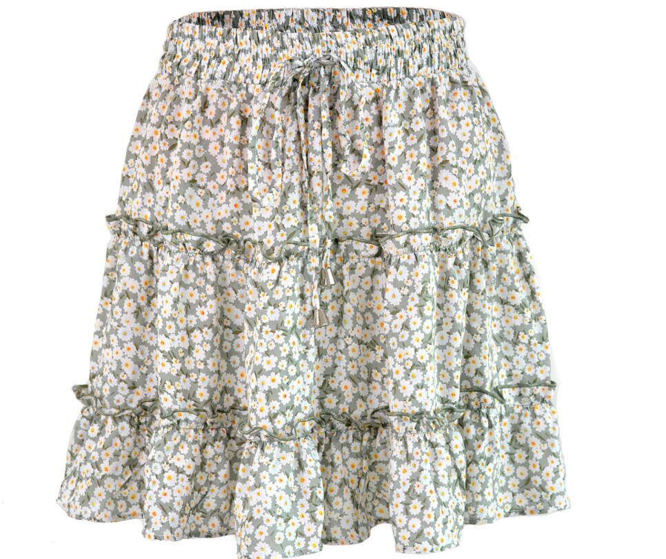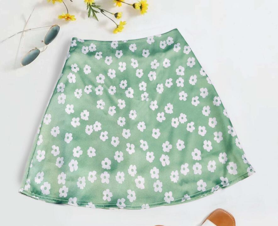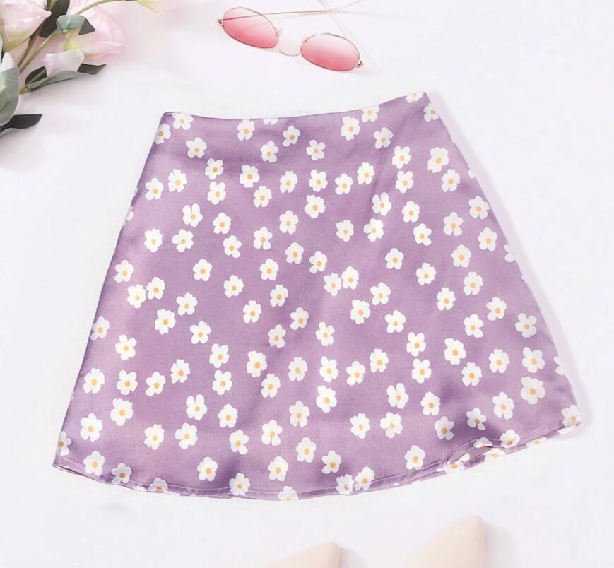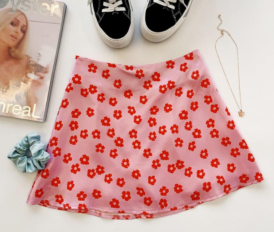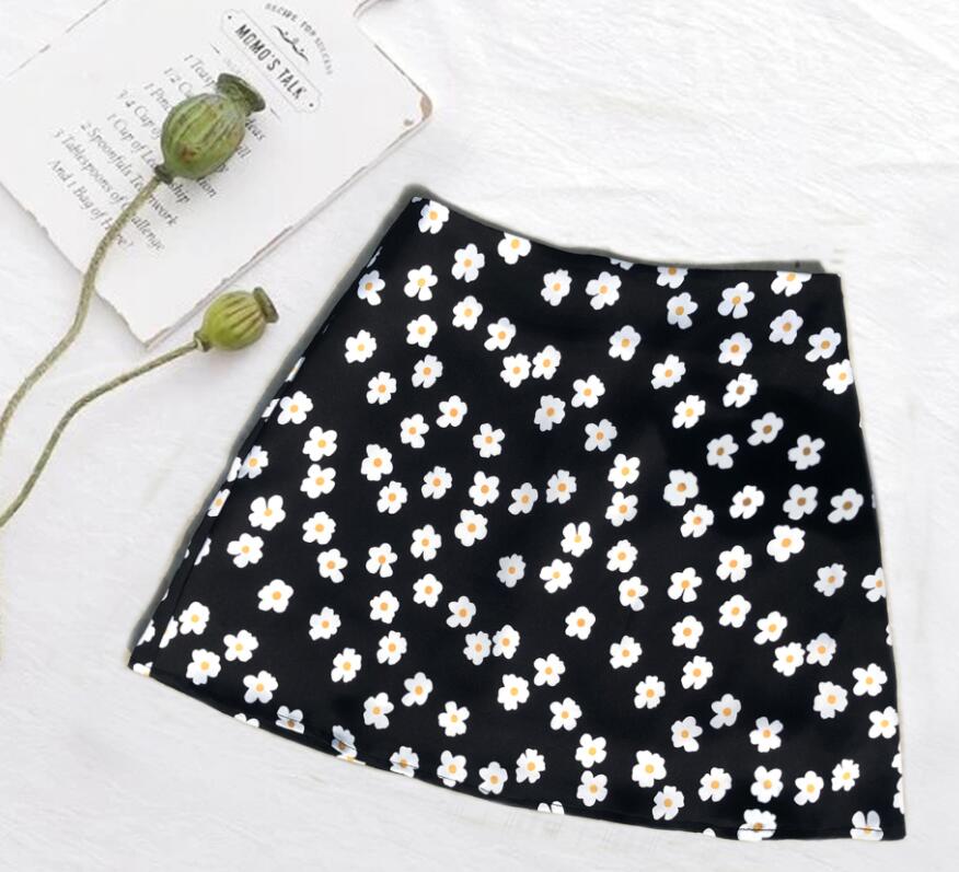 Women's Chiffon Floral Printed High Waist Skirts Casual Streetwear Lady Zipper Mini Skirt WDC6626