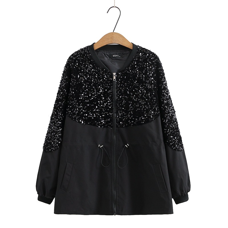Spring Women Jacket Oversize Fashion Casual Clothes Female coats sequined Splice Drawstring waist chaqueta de mujeres