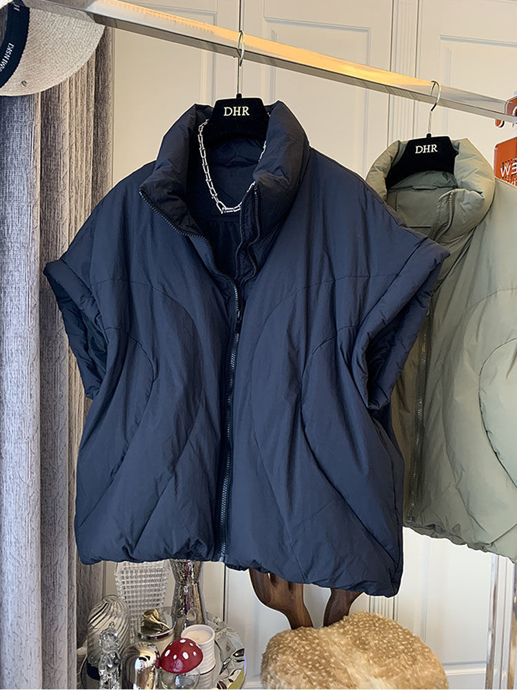 Womens Puffy Vest Down Vest Black Pu Leather Vest Woman Jacket Coat Autumn Winter Outwear Puffer Vest Female Sleeveless Jacket