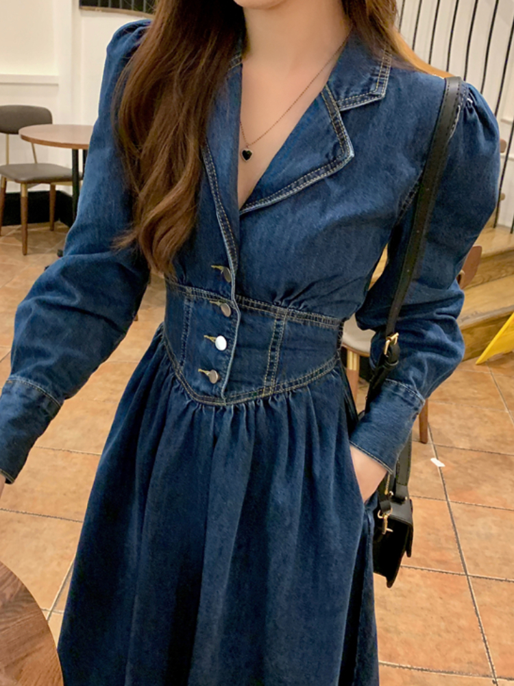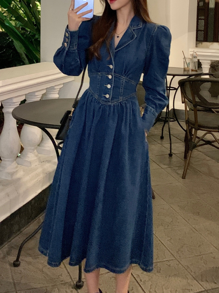 Women's Spring Autumn Casual Midi Denim Shirt Dress Long Sleeve Elegant A-Line Party Jeans Vestido Female Clothes