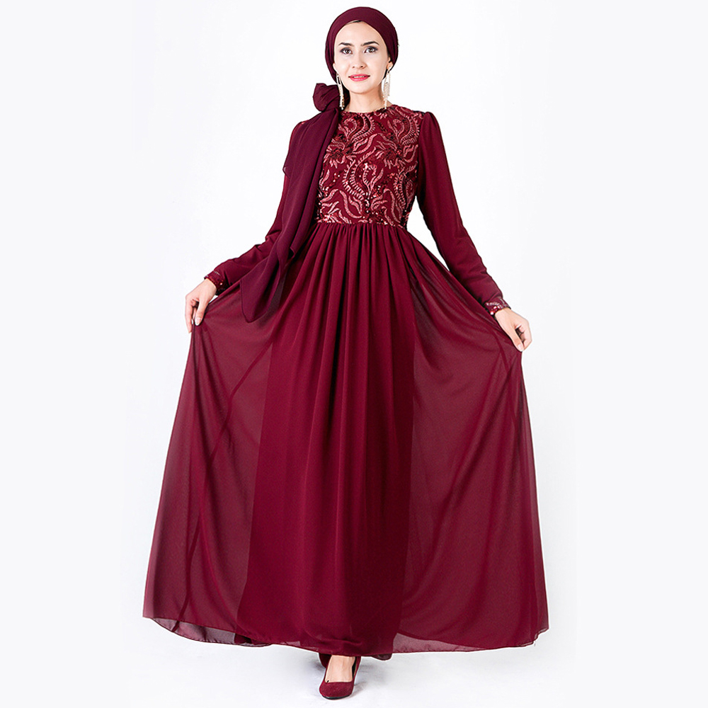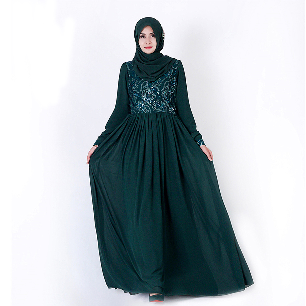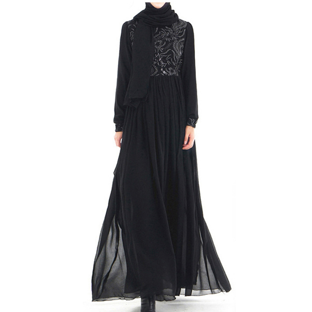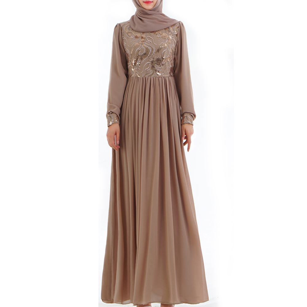 Y023 Women's Long Dress Abaya Modest Robe Ramadan Muslim Sequin 3D Embroidery Islam Chiffon Clothes Lace Without Hijab Scarf