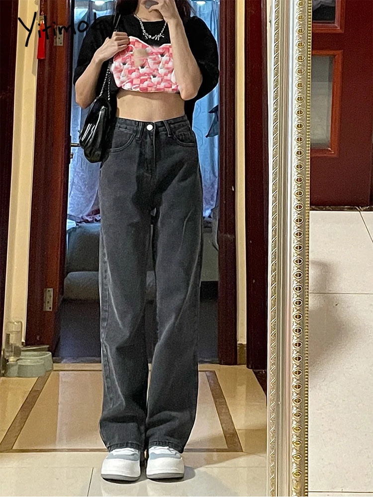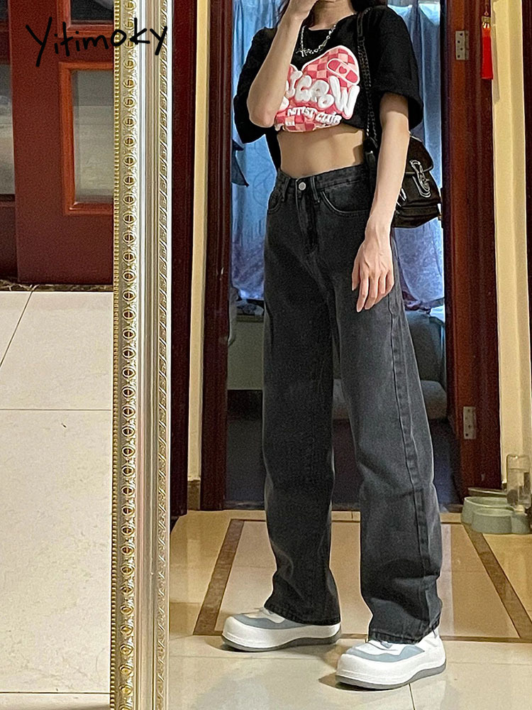 Yitimoky Baggy Jeans Women Vintage 4XL Ankle-length Style Harajuku Wide Leg Denim Retro All-match High Waist Women Trousers Y2k