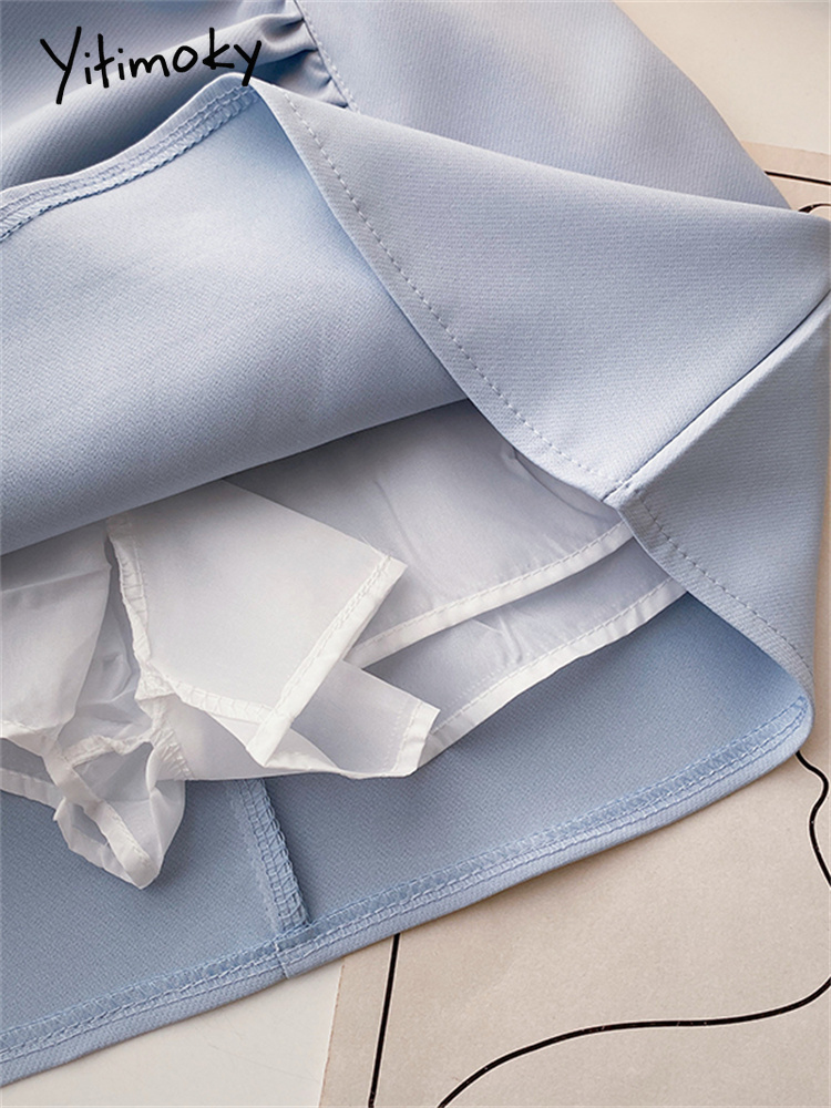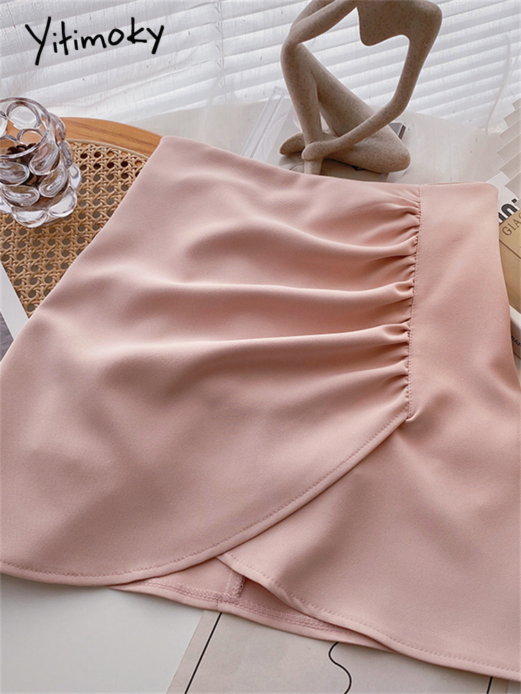 Yitimoky Bud Mini Skirts for Women Elegant Ladies Chic Skirts with Shorts High Waisted Style White Blue Pink Black Skirts