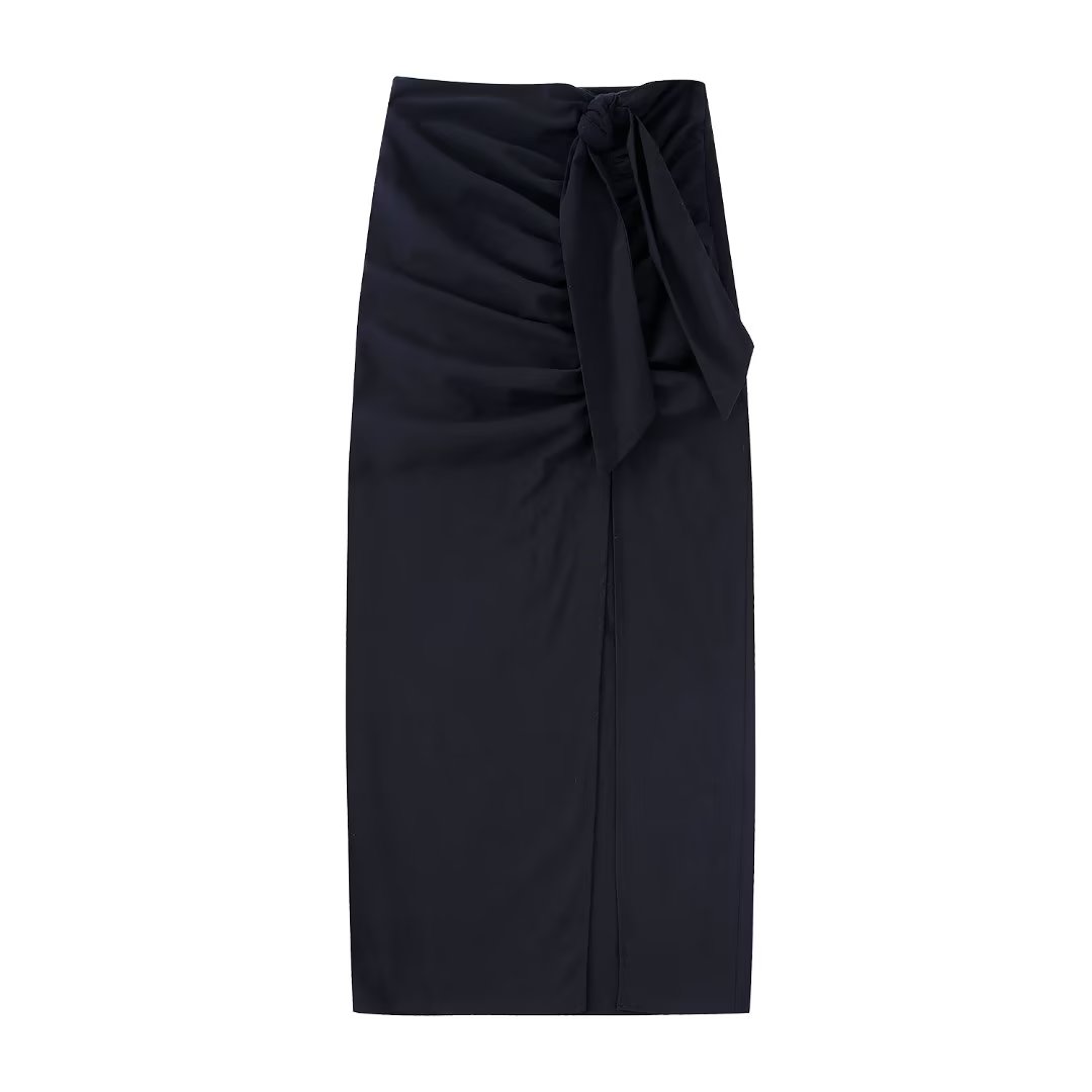 Zevity Women Solid Color Knotted Pleat Sarong Midi Skirt Faldas Mujer Lady Chic Back Zipper Black Slim Vestidos QUN1928