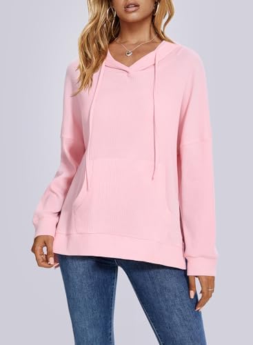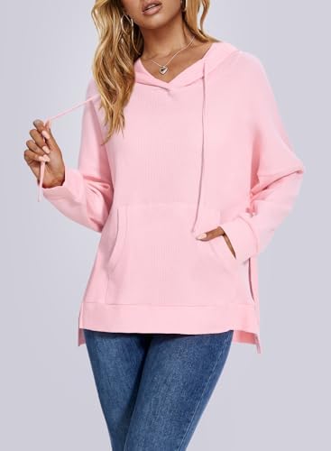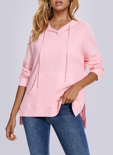 ALIMASHA Womens Hoodies Waffle Knit Tops Long Sleeve Drawstring Casual Oversized Hoodies Pullover Sweatshirt with Pocket