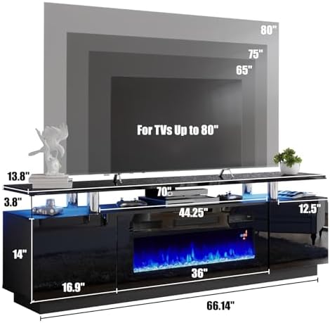 Omg!! I absolutely LOVE this fireplace!! It was the perfect addition to my living room. I had this in my cart for months and was also looking at others but I kept coming back to this one. Even better, bought during Thanksgiving and the price was cheaper!!For reference, that is a 75in TV mounted and I purchased the 70in fireplace. I like that it isn't big and bulky and doesn't take up alot of floor space. Sleek and slim but perfect and enough for what I wanted.The particulars....it came earlier than expected. Ordered it on November 23rd and it was supposed to be delivered between November 29 to Dec 4th but BOTH boxes arrived on November 26th.Yes, some of the the pieces are heavy, hell the box was heavy and I had to pivot it inside my house! But it was doable.Very well packaged and secure. All parts accounted for and wasn't difficult to put together myself. It probably would have taken me a good hour or two but because i was constatntly wrangling a 2yo and a 4yo, it took me 3hrs. The directions weren't complex for the fireplace part nor the stand part.I like the glass Rick's for the fireplace part, the fireplace has 3 colors and the LED lights are ok. I had to put some tape on them to get them to lay flat underneath the top but they worked so no issues there.The doors were the only tricky part as far as getting them lined and adjusted/sitting right. The thing is...DONT tighten the door screws all the way until you have it centered and lined correctly. Then slowly tighten to keep them from shifting out of place. Once done, both doors were perfect.My Samsung soundboard fits perfectly underneath and there is a small circle in the rear to thread cables and cords through.I did read through quite a few of the reviews and yes, it is particle board for the "wood" pieces but overall I love. Just be careful when handling during assembly because some pieces can and did scratch. Luckily it was on the underside so no one will ever see it or know.Not sure if I could but my thoughts are that if the LED strip lights go out, easy replacement and if the fireplace part goes out I could probably replace that to.Overall, glad I bought it at the lower price ($189.99 and $99 for shipping) and it really does add some elegance to my space. Now I just wonder how long my kids will leave it alone for me to have continued enjoyment!