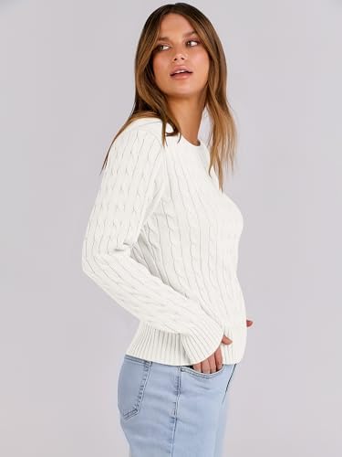 ANRABESS Womens Long Sleeve Cable Knit Sweater Jumper Crewneck Pullover Soft Dressy Casual Tops Cute 2024 Fall Trendy Outfits