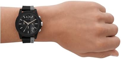 Brand, Seller, or Collection Name Armani Exchange Model number AX1331 Part Number AX1331 Item Shape Round Dial window material type Mineral Display Type Analog Clasp Buckle Case material Stainless Steel Case diameter 45 millimeters Case Thickness 12 millimeters Band Material Silicone Band size Men's Standard Band width 22 millimeters Band Color Black Dial color Black Bezel material Stainless Steel Bezel function Unidirectional Calendar Date Special features Chronograph Item weight 2 ounces Movement Quartz Water resistant depth 100 Feet Warranty Manufacturer’s warranty can be requested from customer service. Click here to make a request to customer service.