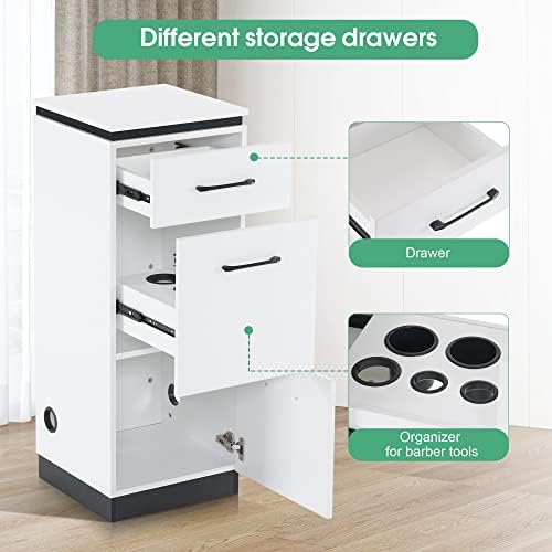 The barber cabinet comes with the drawers including a special drawer for tools that have power cord.
