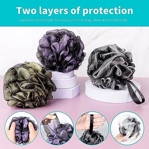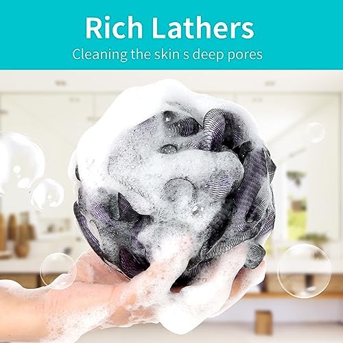 Bath Loofah Shower Sponge Body Back Scrubber Soft Mesh Shower Puffs Exfoliating Loofa for Women & Men Bath Accessories Cleaning Tool (Pack of 4 60G Loofah, Dark Elf)