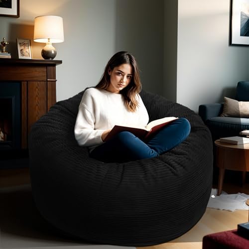 We got this bean bag for our family room to be used for movie watching and video gaming. The bag is super heavy, however it’s important to know this bag easily rolls so you don’t have to pick it up.It comes compressed in a super heavy box, you will need help unless you open the box an slide it out where it is and open the bags to release the bag. It’s fairly easy to get the cover on and I like how you can take it off to wash.Also the memory foam piecesinside seem to be a better option than those beans that eventually compress because they maintain their shape and cushion.The bag itself is round and is accommodating for everyone. This bag is perfect for teens and kids. I would certainly recommend, please make note of this size. It is quite large.