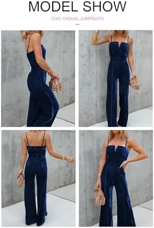 Women V Neck Spaghetti Straps Velvet Jumpsuits Dressy Fall Romper With Pockets