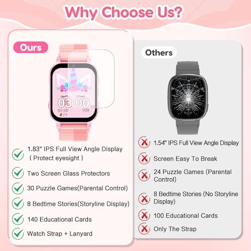 cjc Smart Watch for Kids Gift for Girls Ages 4-12 - Includes Screen Protector, 30 Games, 140 Learning Cards, HD Touch Screen, Camera, Music, Pedometer - Fun & Educational Birthday Gift IdeaRecommendations