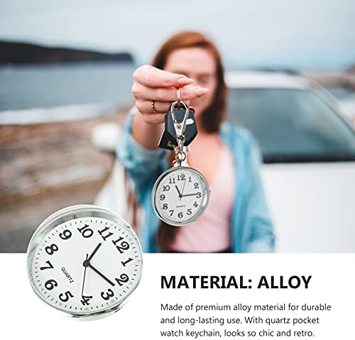 Features ● Color: Black. ● Material: Alloy. ● Size: 8.00X4.00X0.70 cm/ 3.14X1.57X0.28 inch. ● Material: This keychain pocket watch is made of alloy material, it is a retro and stylish accessory for your handbag and wallet. ● Easy to Carry: Clip- on pocket watch with a key fob that fits in a pocket, hangs on a backpack, or purse, and easily secures to accessories without damage. ● Easy to read: The large screen of the pocket watch allows you to see clearly, the font size is just right, and you can directly get the accurate time. ● Unique Design: This pocket watch chain is useful and practical as a clothing accessory, the clasp can be used to fasten any bag, purse, or similar to bring you a good mood. ● Great Gift: This open dial pocket watch can be used as a gift for family and nurse doctor friends, suitable as a graduation gift, birthday gift, Christmas gift, etc. Package Including 1 x Watch Keychain