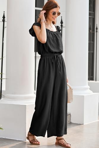 Dokotoo Jumpsuits for Women Summer Ruffle Sleeves Square Neck Wide Leg Overalls
