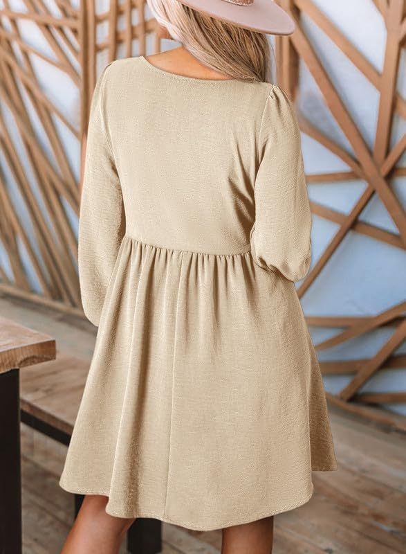 Dokotoo Womens Long Sleeve Empire Waist Smocked Flowy Mini Dress