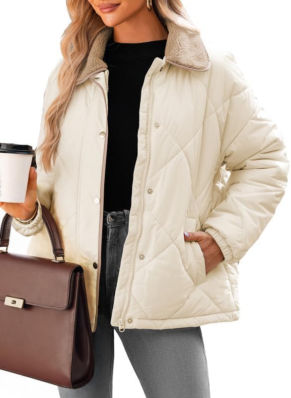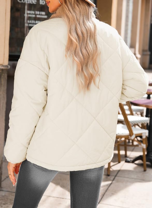 Dokotoo Women's Casual Quilted Jackets Long Sleeve Button Down Outerwear Coats