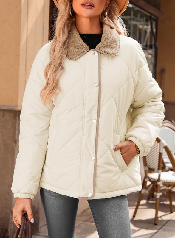Dokotoo Women's Winter Casual Quilted Jackets Long Sleeve Button Down Puffer Jacket Padded Outerwear Coats