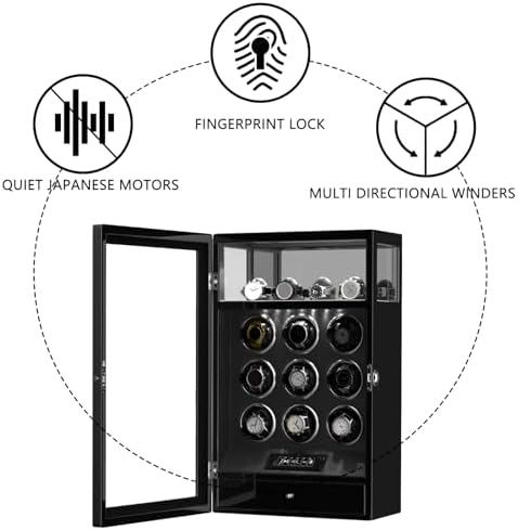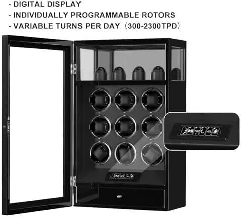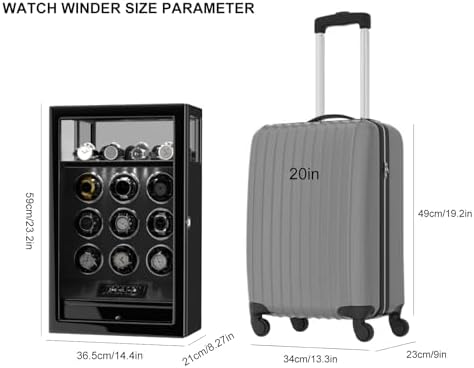 Watch winder for 9 + 4 watches: 36cm (L) x 20cm (W) x 59cm (H) / 14.17" x 7.87"x 23.22"; 14kg