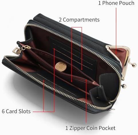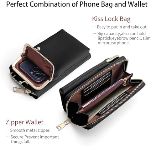 EASTNIGHTS Small Crossbody Phone Bag for Women Cell Phone Purse Wallet Kiss Lock Cute Shoulder Bag with Credit Card Slots