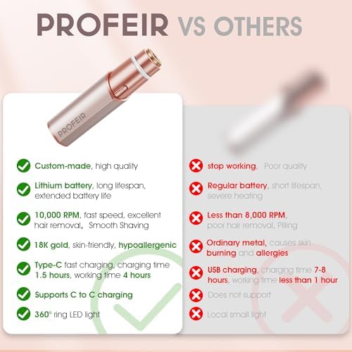 I have bought and tried so many of the facial hair removers. Every kind of brand even some of the brands meant for men. None of the facial hair removers that I have tried over the last couple of years have worked removing facial hair. Not until I decided to try one more " The Profeir Facial Hair Remover". I actually tried it because the price was resonable and it came with two extra shaving heads. It is "GREAT", It removes peach fuzz and those dark stray hairs you get under your chin. I am 72 years old so I get all of those kind of hairs. I will never have to shave my face with a razor again because the "Profeir Facial Hair Remover" does it all for me. Afterwards my face feels smooth, not rough like some shavers can make it feel. "Buy It" you will not be sorry!!