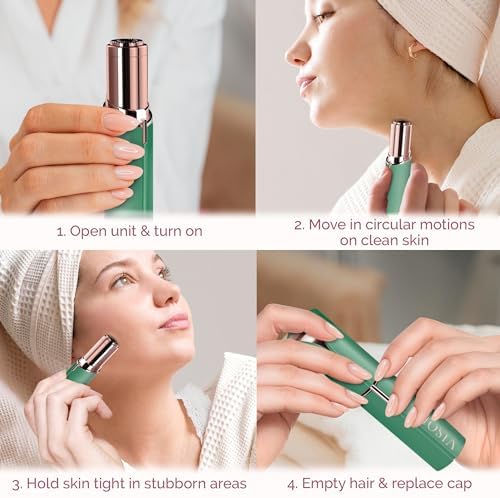 Facial hair removal device with small compact design is gentle enough to use everyday before putting on makeup, no need to wait for regrowth, so you can enjoy hairless skin everyday without nicks, bumps or razor burn