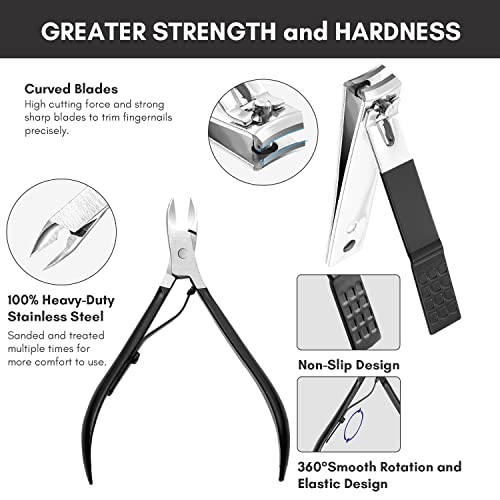FAMILIFE Nail Kit, Professional Manicure Set Manicure Kit Nail Clipper Set, 13 in 1 Stainless Steel Pedicure Set Nail Clipper Kit, Men Grooming Kit with Portable Black Leather Travel Case for Him