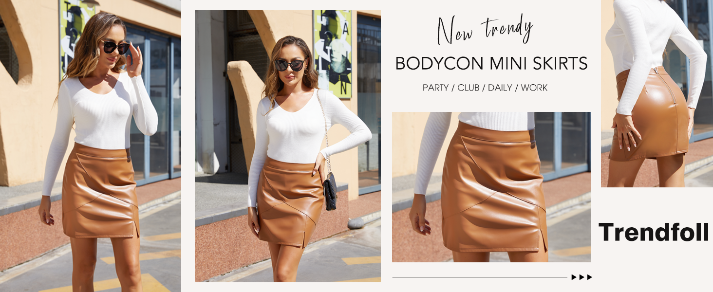 Trendfoll Faux Leather Skirt for Women High Waisted Bodycon Pencil Mini Skirts