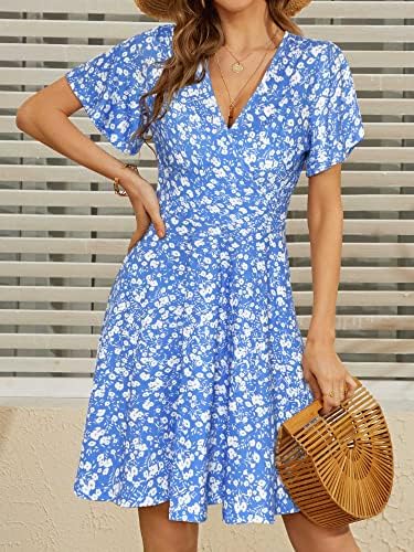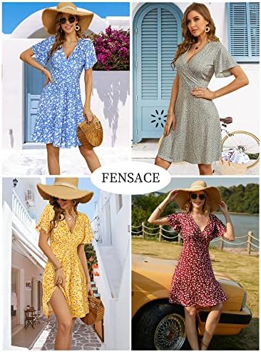 FENSACE Summer Wrap V Neck Floral Midi Sun Dresses for Women Casual