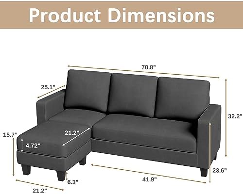 Furniwell L-shaped sectional sofa has a total width of 70.8 inches, which is very suitable for small and medium spaces, such as dormitories, apartments, study rooms, and office reception areas.