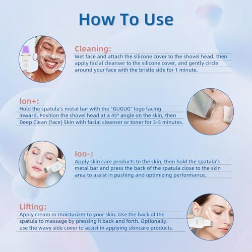 GUGUG Skin Scrubber Face Spatula Skin Spatula Pore Cleaner Blackhead Remover Tools for Facial Deep Cleansing-4 Modes -White